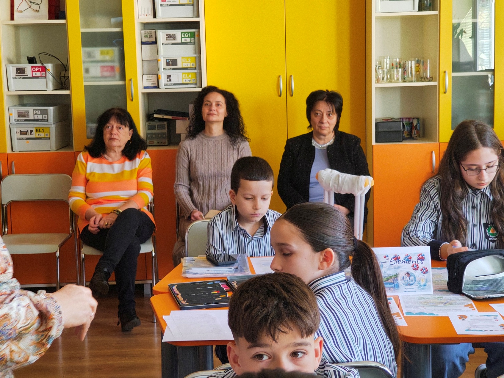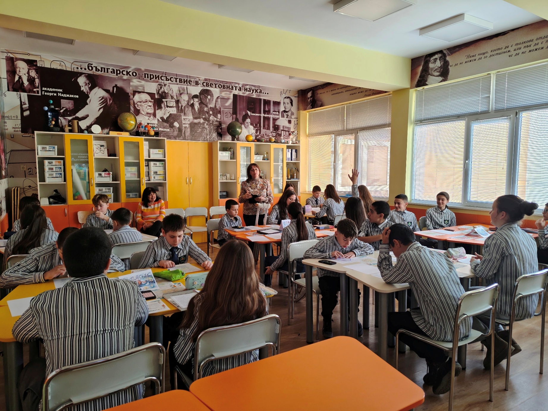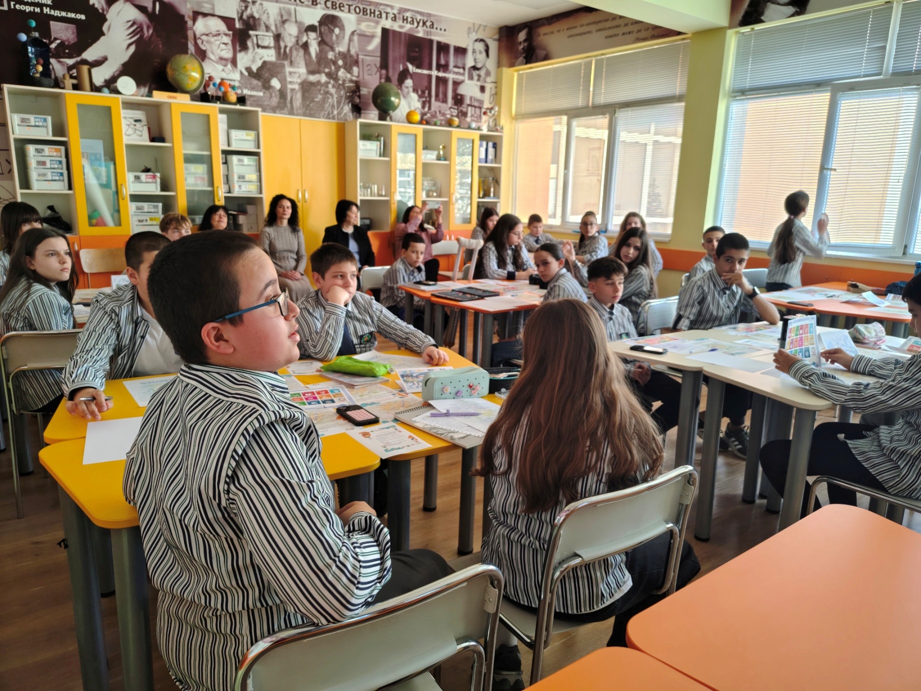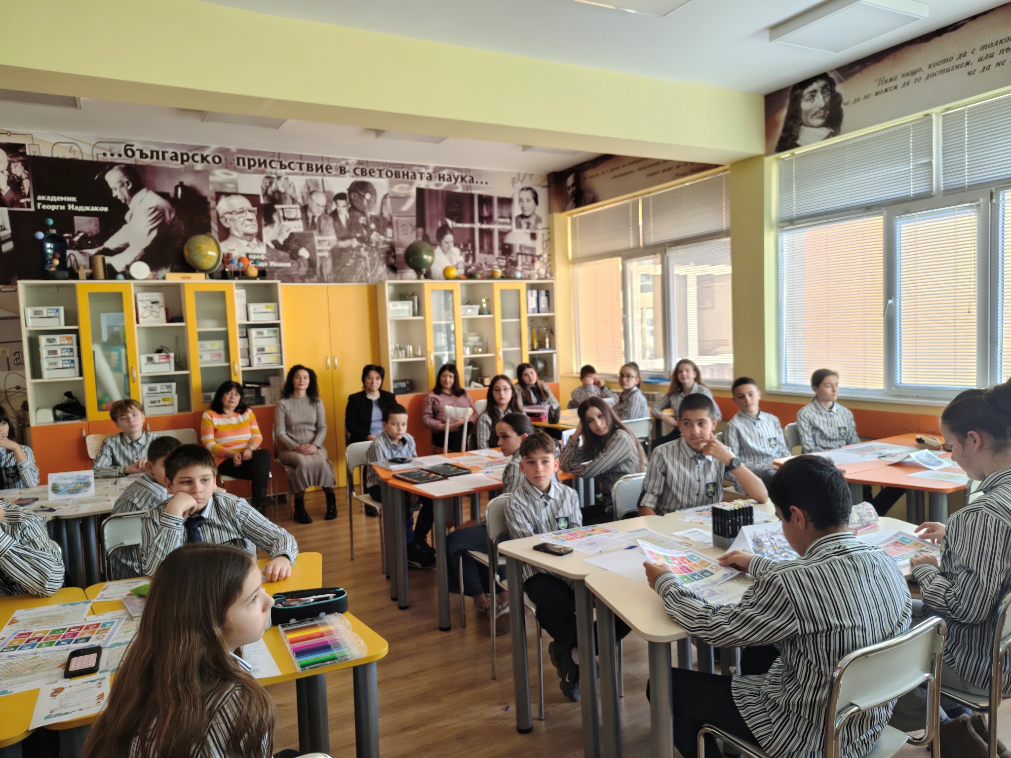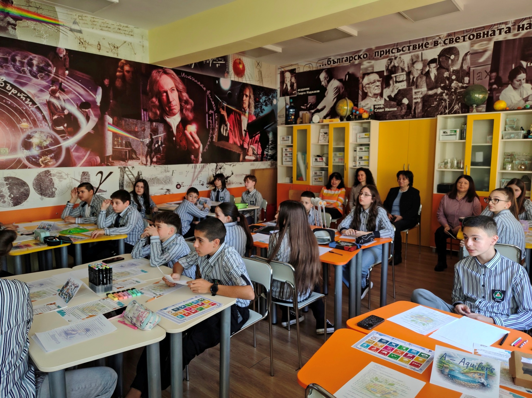 На урока присъстваха директорът на гимназията, г-жа Веселка Сиракова, старшият експерт по природни науки и екология в РУО – Враца, г-жа Ани Георгиева, както и други учители от гимназията. Те наблюдаваха работата на учениците и изразиха подкрепа за инициативите на училището, насочени към въвеждане на съвременни интердисциплинарни подходи в обучението по природни науки.