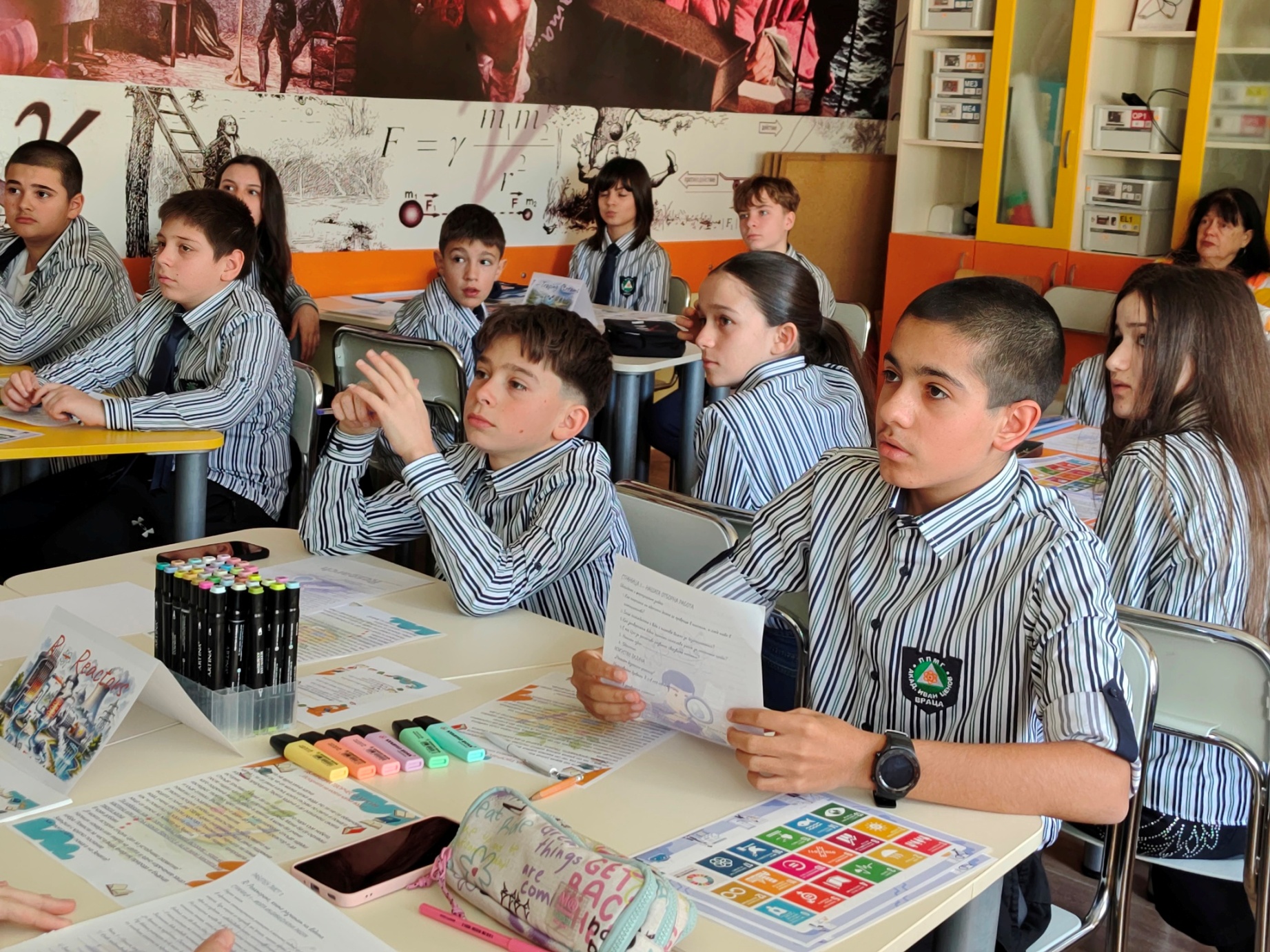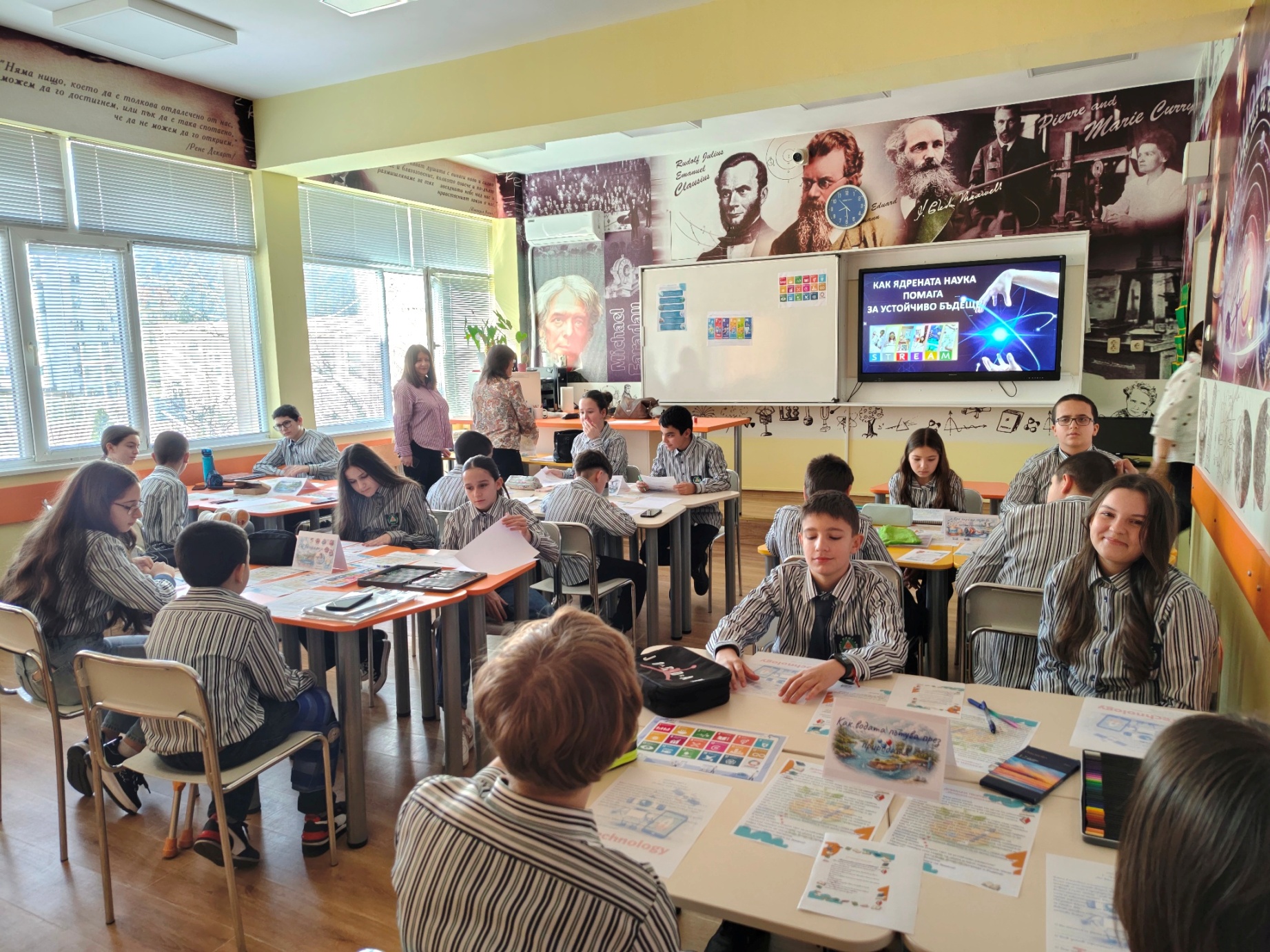Учениците от VI а клас на Профилираната природо-математическа гимназия участваха в интердисциплинарен урок на тема „Историята на една капка вода – как ядрената наука помага за устойчиво бъдеще“. Урокът бе организиран от г-жа Пепа Павлова, координатор на проект Еразъм+ и старши учител по физика и астрономия, и г-жа Ивалина Райкова – старши учител по биология и здравно образование.