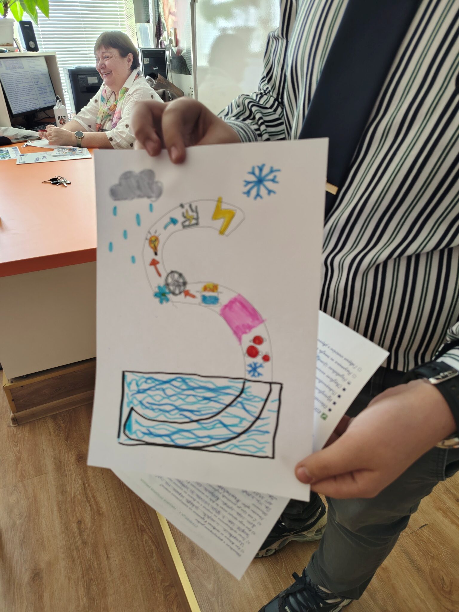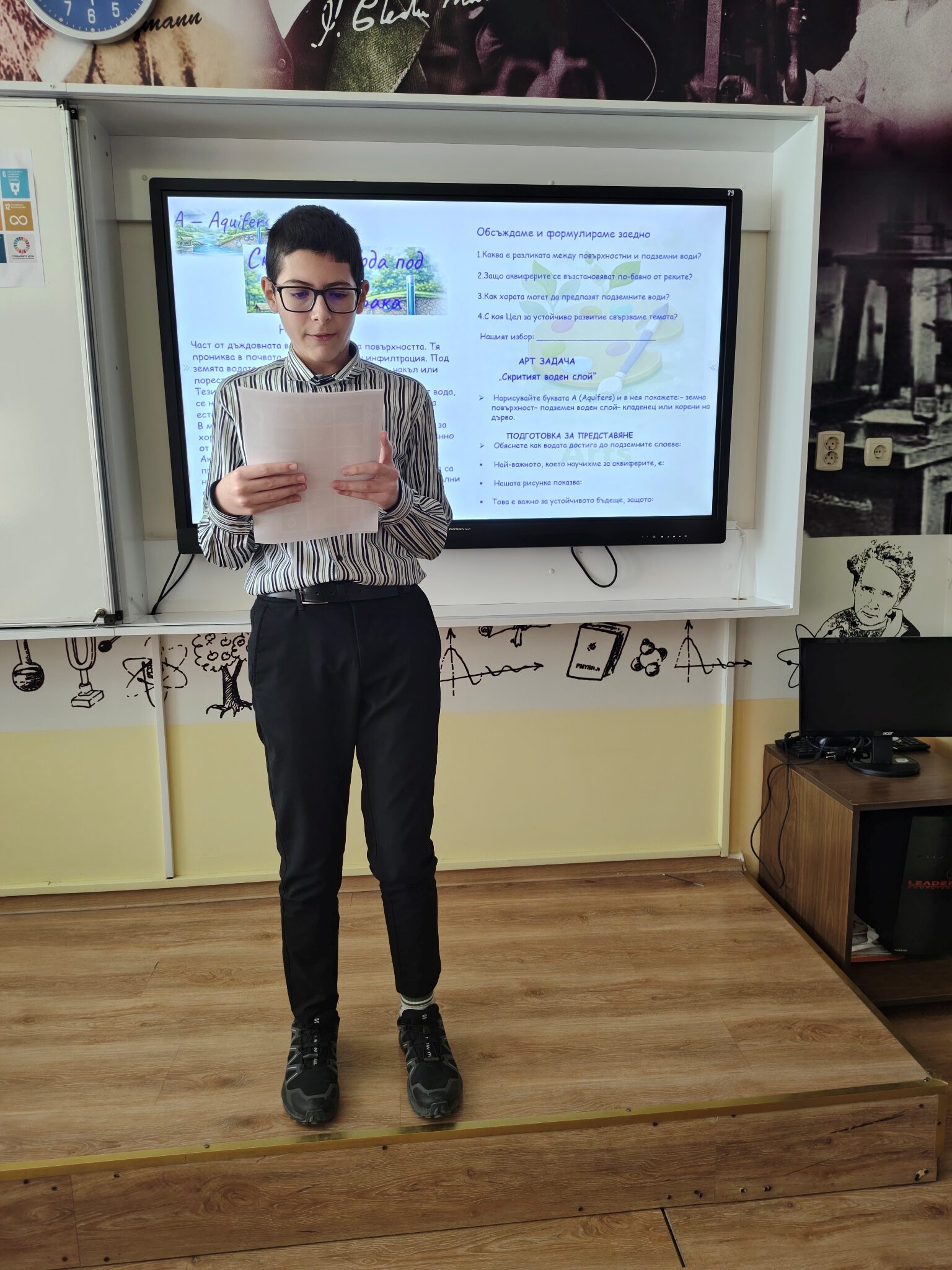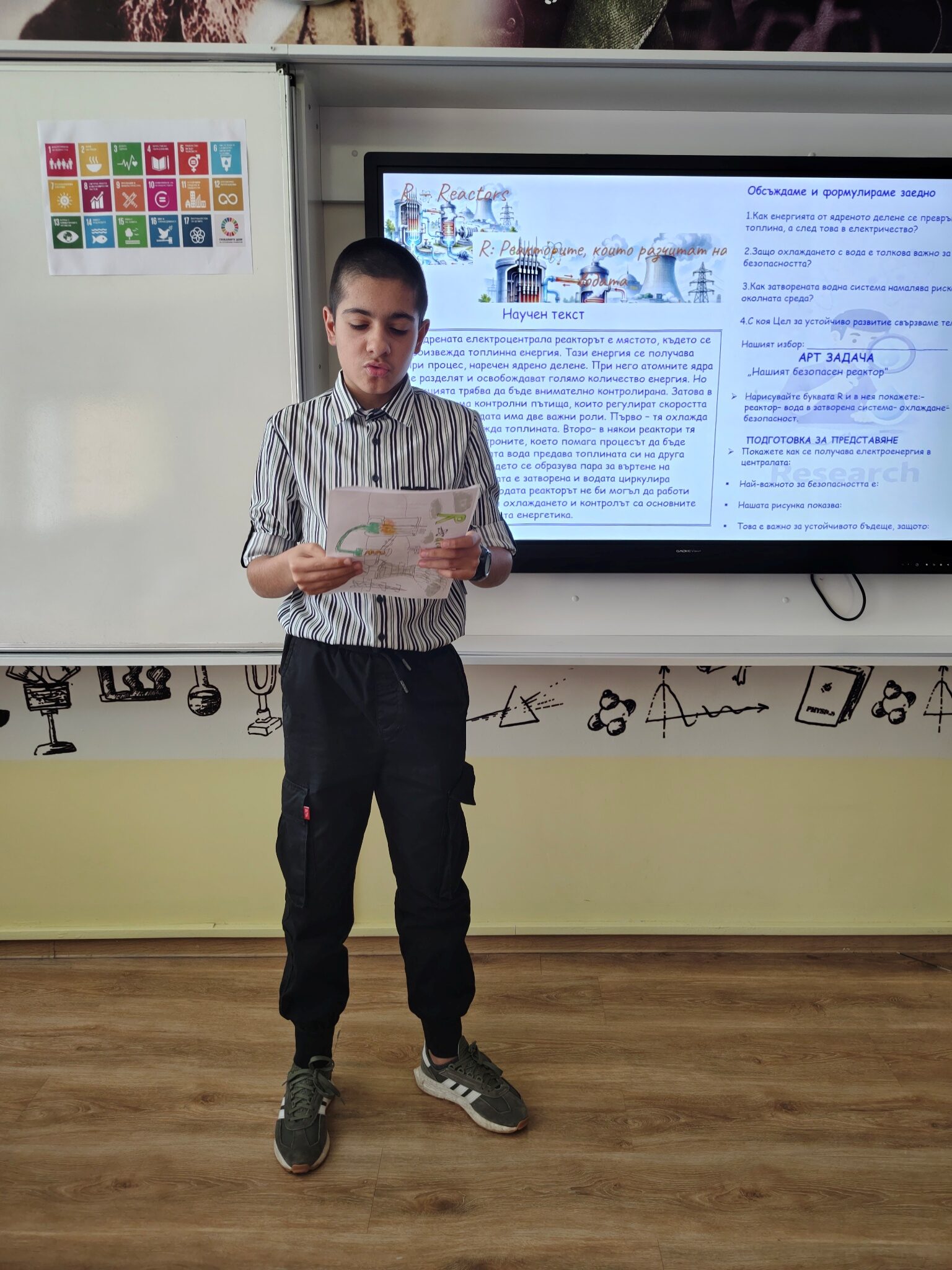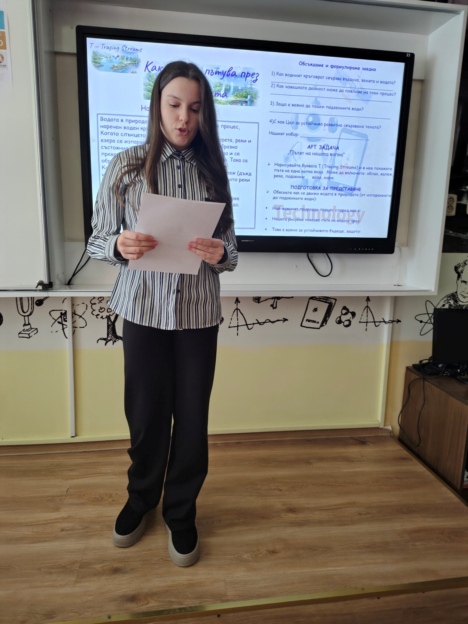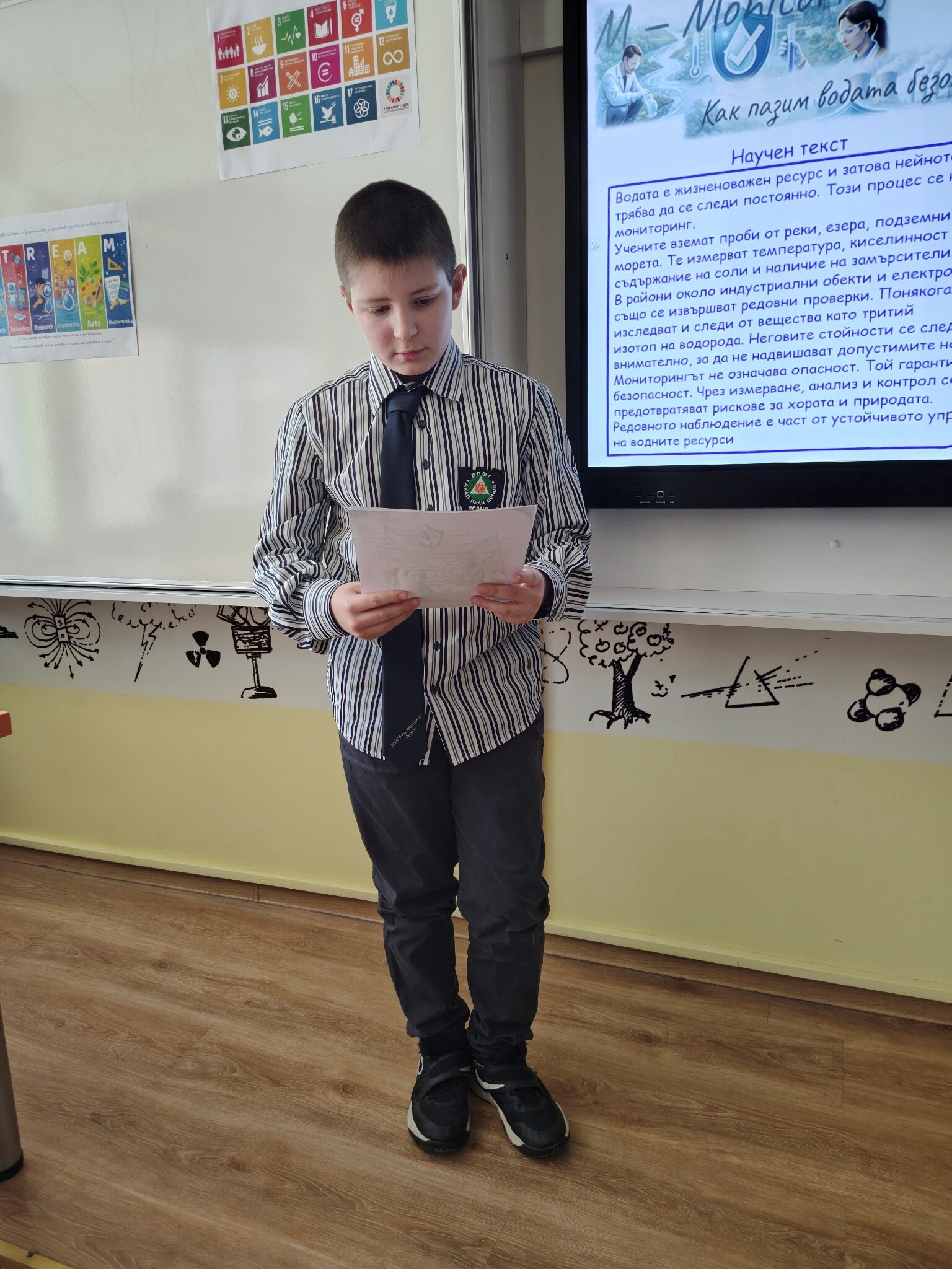 Чрез интегрален STREAM подход учениците проследиха пътя на една капка вода и изследваха връзките между природните процеси, производството на енергия и съвременните научни методи за опазване на водните ресурси и целите за устойчиво развитие на ООН. Шестокласниците работиха в екипи, анализираха научна информация и обсъждаха значението на водата като природен ресурс. Чрез различни роли учениците разгледаха темата от гледна точка на науката, технологиите, изследванията и инженерните решения, а в края на занятието представиха своите изводи и предложения. Работата в екип и публичното представяне на резултатите им позволиха да развият умения за аргументация, сътрудничество и критично мислене.
